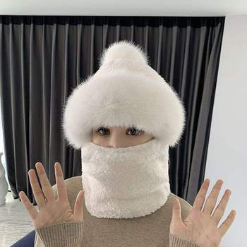 Korean Lovely Personality Warm Knitting Cap Winter Women Adults with Fleece Double Hair Ball Pullover Hat