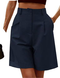 Mulheres shorts wide-leg casual marinha shorts soltos verão cintura alta moda shorts quentes com bolsos roupas por atacado