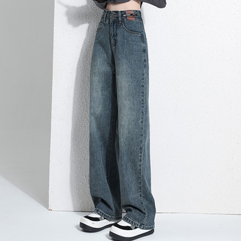 กางเกงยีนส์ขาตรงเอวสูงสำหรับผู้หญิงกางเกงยีนส์ขากว้างดีไซน์ใหม่
