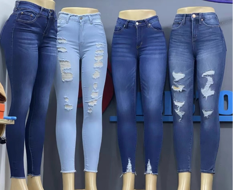 Overstock Apparels bayanlar sıska Denim pamuk streç Jean çin stok Lot kadın pantolon moda bayanlar Jean