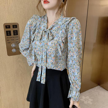 2023 Mới Thời Trang Phụ Nữ Phụ Nữ Mùa Xuân Thanh Lịch Áo Sơ Mi Dài Tay Áo V Cổ Bow Dây Đeo Hoa Áo T-Shirt Giản Dị Áo Sơ Mi