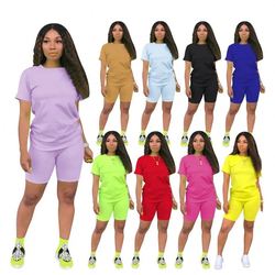 Phụ Nữ Quần Áo Hai Mảnh Thiết Lập Của Phụ Nữ Giản Dị Ngắn Tay Áo Bodycon Hai Mảnh Mùa Hè Áo Sơ Mi Và Quần Short Thiết Lập Bán Buôn Cộng Với Kích Thước